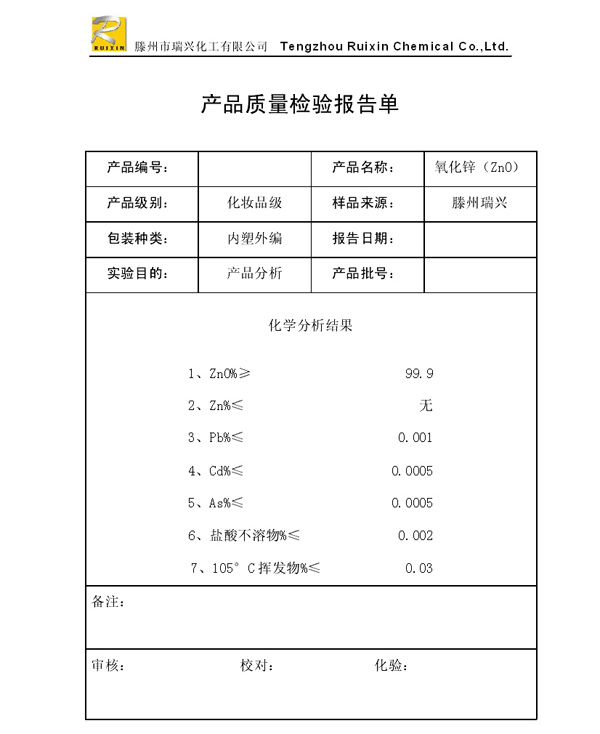 瑞興化工有限公司是生產氧化鋅的重點企業,于2008年通過ISO9001:2008質量管理體系認證。“瑞興”牌氧化鋅在國內擁有較大穩定的市場,并遠銷東南亞、中東、中南美等國家和地區,在國內外享有較高聲譽。
